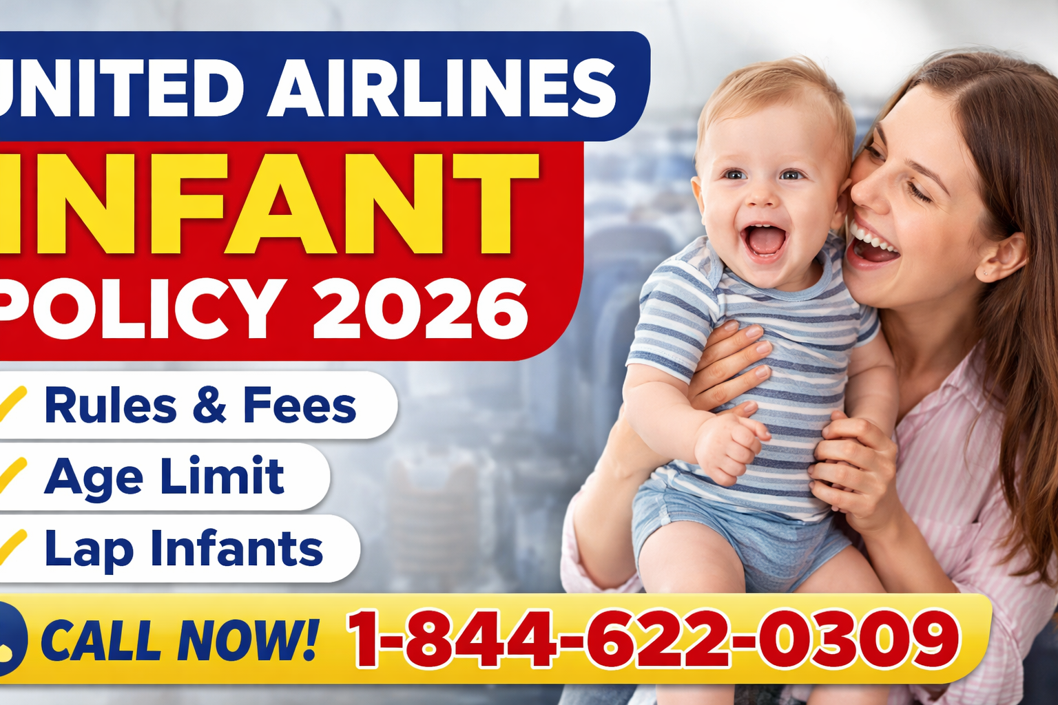The updated airline infant policy 2026 by United Airlines is designed to ensure safety, comfort, and convenience for families traveling with children. According to the latest airline rules for traveling with baby, infants under 2 years old can usually travel as lap infants on domestic flights. However, international travel may require additional documentation and sometimes a separate seat depending on destination regulations. For expert travel assistance, you can reach ToursDevotee — Call us now at 1-844-622-0309